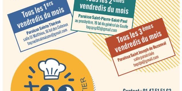 Tous les 2èmes vendredis du mois au presbytère, 19 bd de Gaulle (toqspsp92@gmail.com)