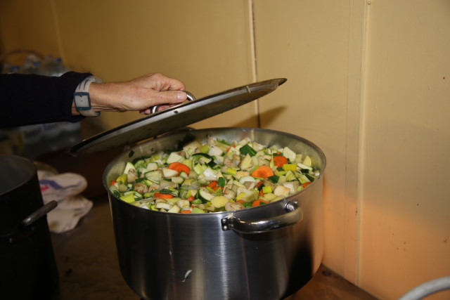 Hier en fin d’après-midi, sur le parvis de Sainte-Thérèse, à la maison paroissiale Saint-Pierre Saint-Paul, à Notre-Dame de la Compassion, tout le monde s’active autour de la réalisation des soupes…
